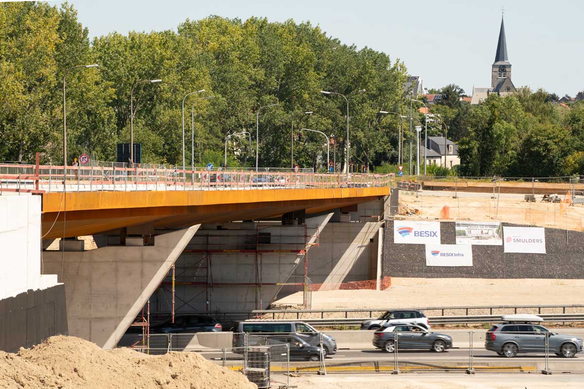 De bouw van de bruggen werd toevertrouwd aan de joint venture Besix (funderingen en betonwerken) - Iemants Smulders (productie staal en installatie) in opdracht van De Werkvennootschap.