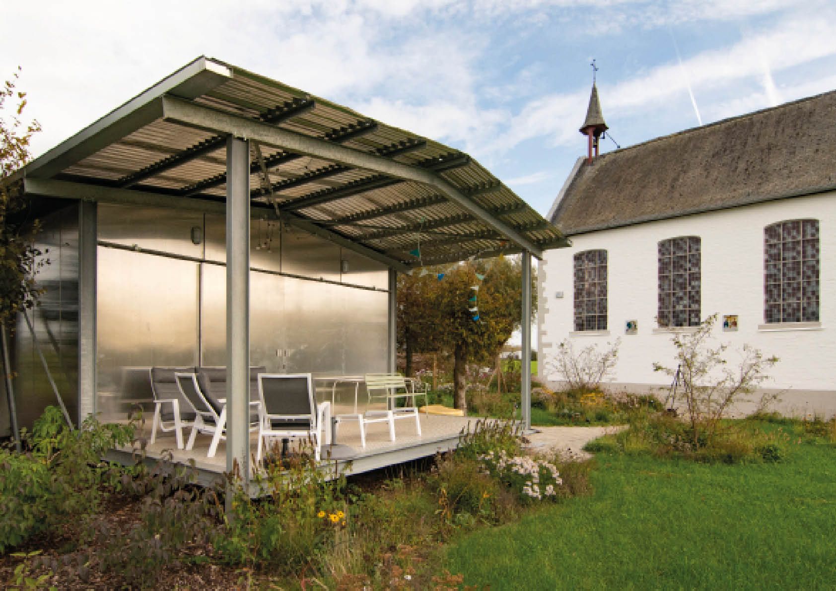 Une chapelle du XVIIe siècle située au milieu d’un champ dans la région de Dender est réaménagée en habitation. Une structure légère en acier est adossée contre le mur est et rend l’espace généreux habitable.
