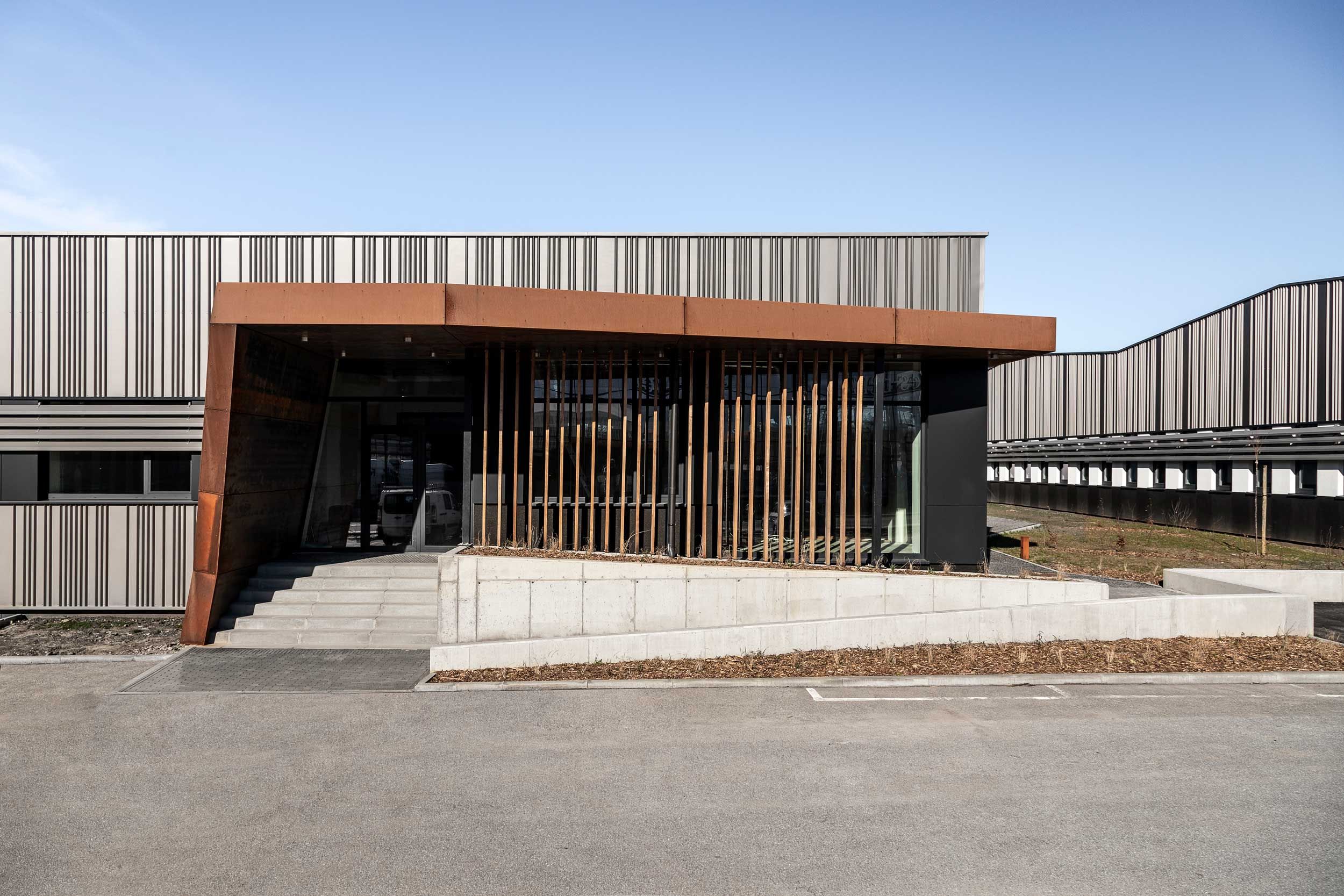 Transformer un ancien bâtiment d’entreprise automobile en parc industriel polyvalent, adapté aux activités de start-ups, actives notamment dans le secteur de l’automatisation pour les drones : telle était la mission du bureau Draft & Project Architectures pour le projet Diginnov à Nivelles. L’équipe d’architecture a délivré un nouveau complexe performant d’un point de vue énergétique tout en conférant au bâtiment une identité marquée, grâce, entre autres, à l’utilisation récurrente de l’acier corten pour plusieurs points stratégiques de l’édifice.