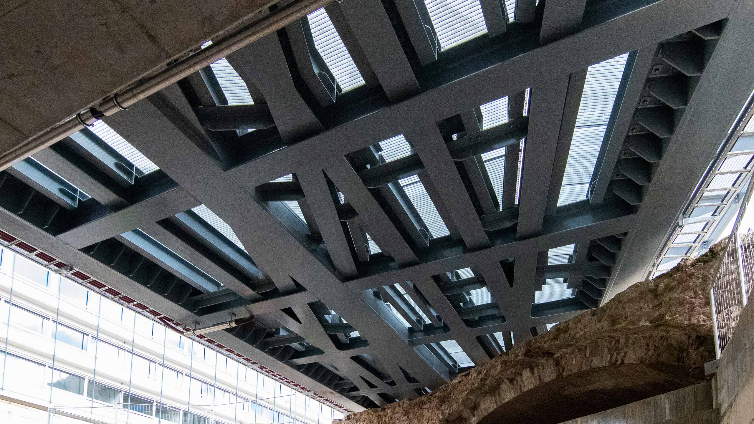 Dankzij de integrale dienstverlening, waarbij in hetzelfde bureau het ontwerp van de metalen bovenbouw én de betonnen onderbouw door experts berekend en getekend wordt, behoudt de bouwheer en de hoofdaannemer 100% controle over de volledige structuur.