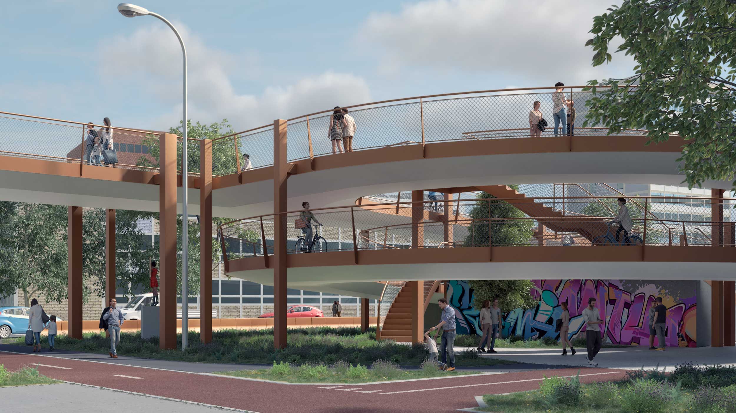 Veiligheid voor zwakke weggebruikers is hét belangrijkste doel van dit project. Maar de brug zal ook een plek zijn van beleving en ontmoeting voor de vele studenten in de buurt. Daarom gingen de ontwerpers verder dan de minimum afmetingen die het fietsvademecum voorstelt. De hellingen, die vooral door fietsers gebruikt zullen worden, zijn 5,5 meter breed. De bovenkant van de brug, waar zowel voetgangers als fietsers elkaar kruisen, is 7 meter breed. Voor voetgangers zijn er trappen voorzien. Maar de hellingen zijn met hun maximum hellingspercentage van 3,2% evengoed aantrekkelijk voor voetgangers. (bron: Arcadis)
