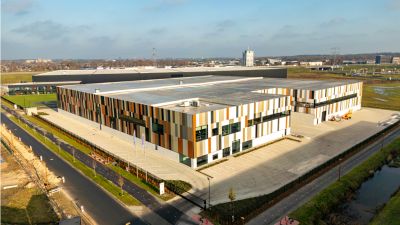 • Tekst: Quiconque quitte Herentals via la N13 et le pont sur le canal Albert ne peut ignorer The Cool Factory, dont l’impressionnante façade en verre du bâtiment principal domine fièrement tout ce qui l’entoure. Il s’agit de la nouvelle base opérationnelle d’un maître d’ouvrage ambitieux qui accorde une grande importance à la durabilité, à la fonctionnalité et à l’esthétique. Le Creative Cooling Group s’est en effet installé sur une ancienne base de l’armée britannique et a opté pour un juste milieu entre construction neuve et rénovation. Une partie des hangars militaires existants ont été réaménagés et complétés par un nouveau bâtiment de grande hauteur, qui a aussi reçu une toiture à deux versants avec charpente en acier. De subtils clins d’œil architecturaux à l’activité principale de l’entreprise complètent le tableau.