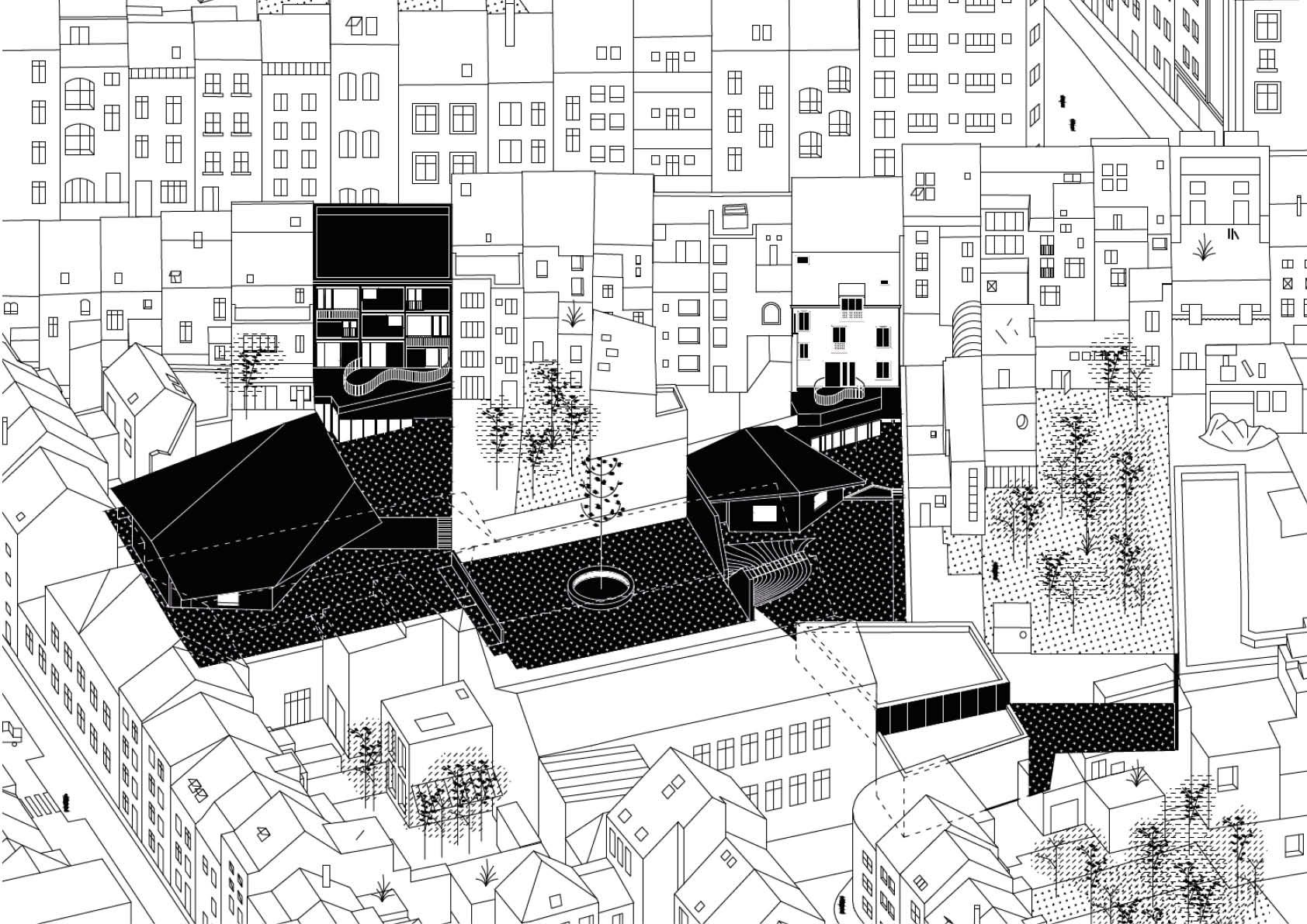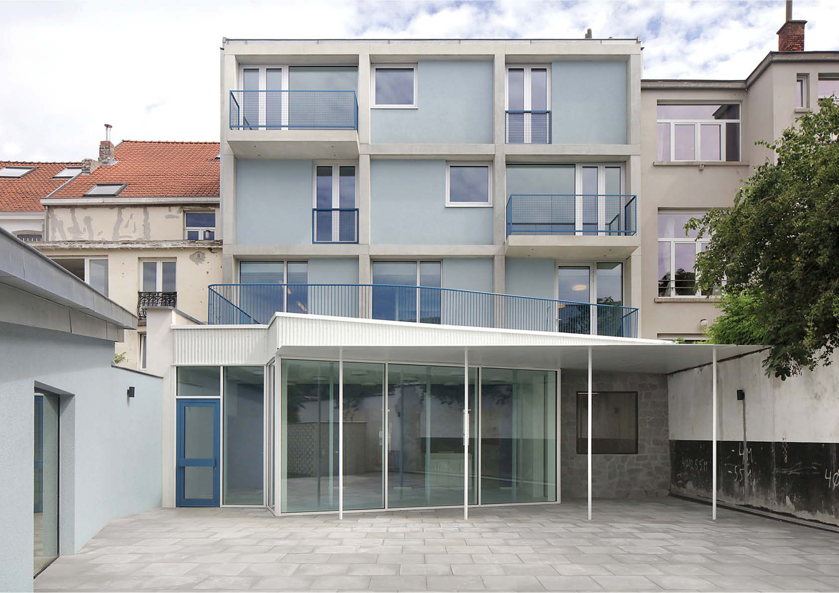 La mission du projet « Pool intergénérationnel » consistait à proposer un contrat de quartier et fait partie d’une intégration plus large de la vie sociale d’Etterbeek. Le programme comprenait une multitude de fonctions sociales, regroupées par générations, telles qu’une école de musique, une crèche, une ludothèque et des logements sociaux.