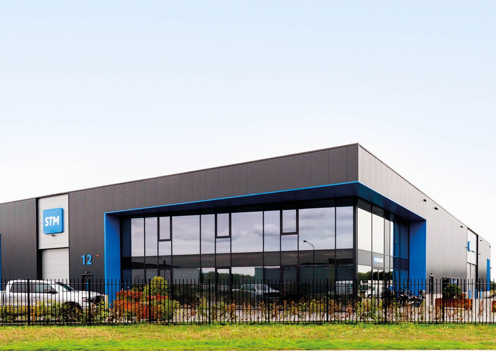 STM Machinebouw a emménagé dans un nouveau bâtiment comprenant des bureaux et un espace de production à Oss, aux Pays-Bas. La première phase concernait la zone de production : deux halls séparés avec leurs propres chemins de roulement. La combinaison de panneaux sandwichs montés verticalement et de portes sectionnelles montées horizontalement offre un cachet supplémentaire aux façades.