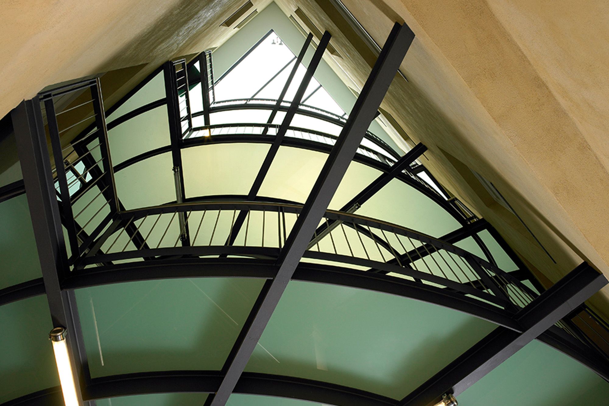 Classés Monument national par l’état, les bâtiments de l’ancienne clinique ont été réhabilités en 12 appartements aux étages et en commerces au rez-de-chaussée. L’ancienne cour centrale désormais affectée aux circulations a été couverte d’une verrière. Elle sert d’espace commun sur toute la hauteur de l’immeuble. Les paliers donnant accès aux différents logements associent le métal et le verre. De forme ovale, ils sont détachés des 4 murs de la façade intérieure et incorporent la structure de l’ascenseur sur laquelle ils prennent appui.