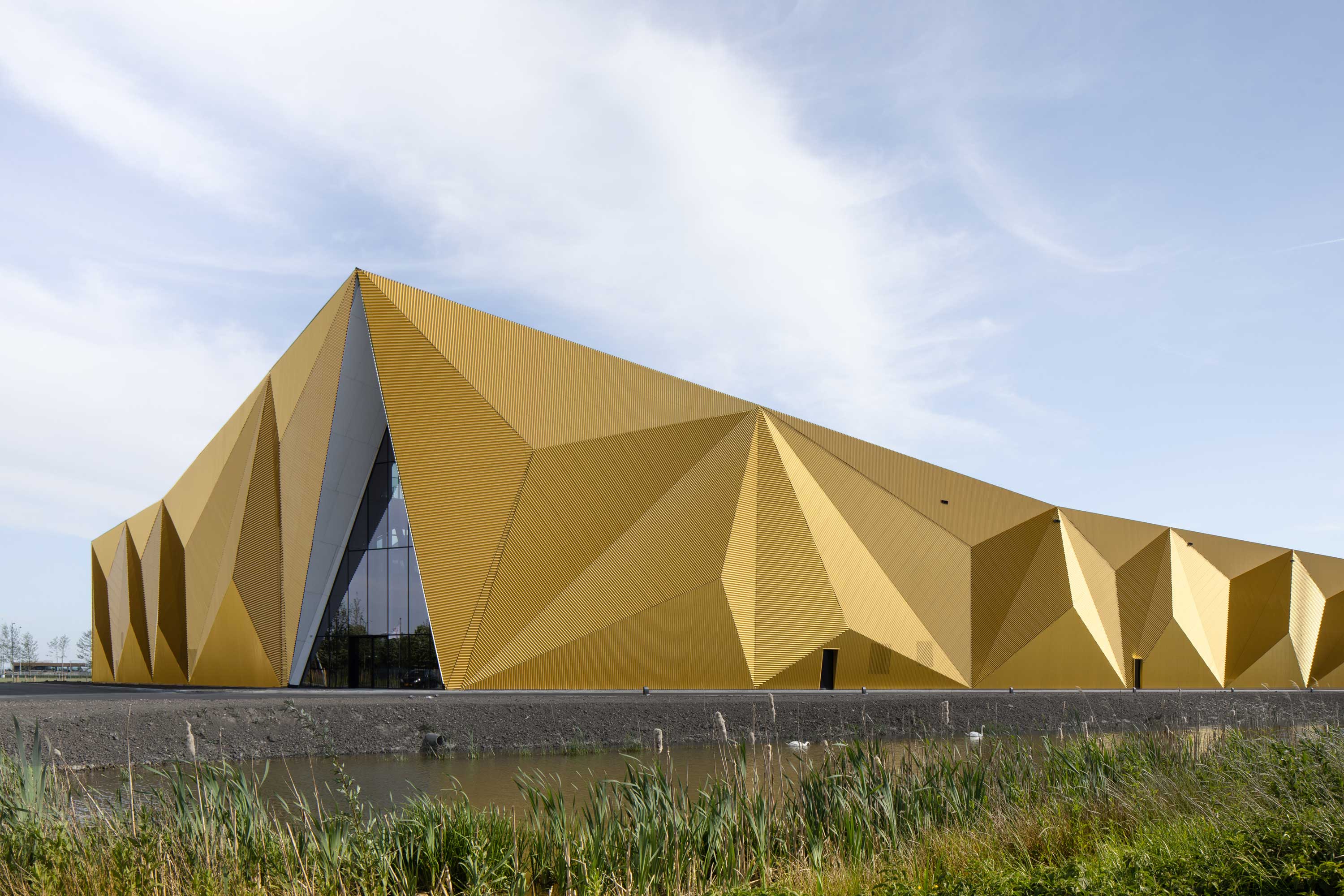 Impressionnant hangar aéroportuaire à la toiture ondoyante