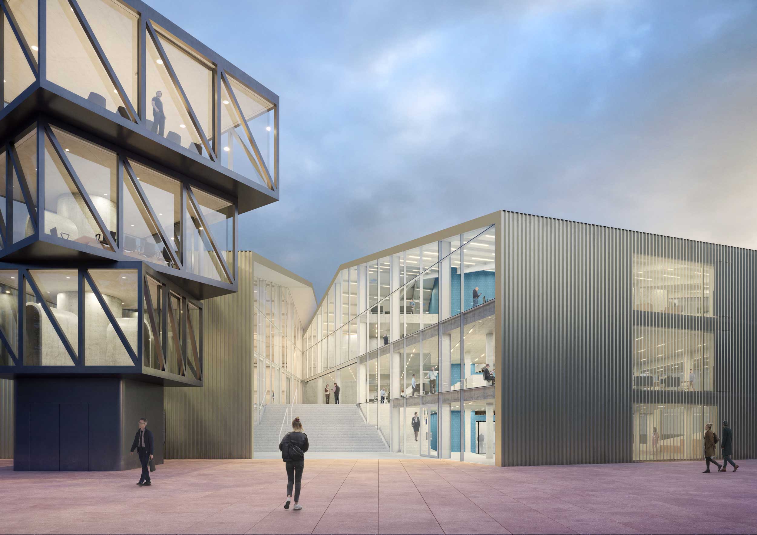 Une charpente métallique caractéristique crée une synergie entre l’ancien et le nouveau