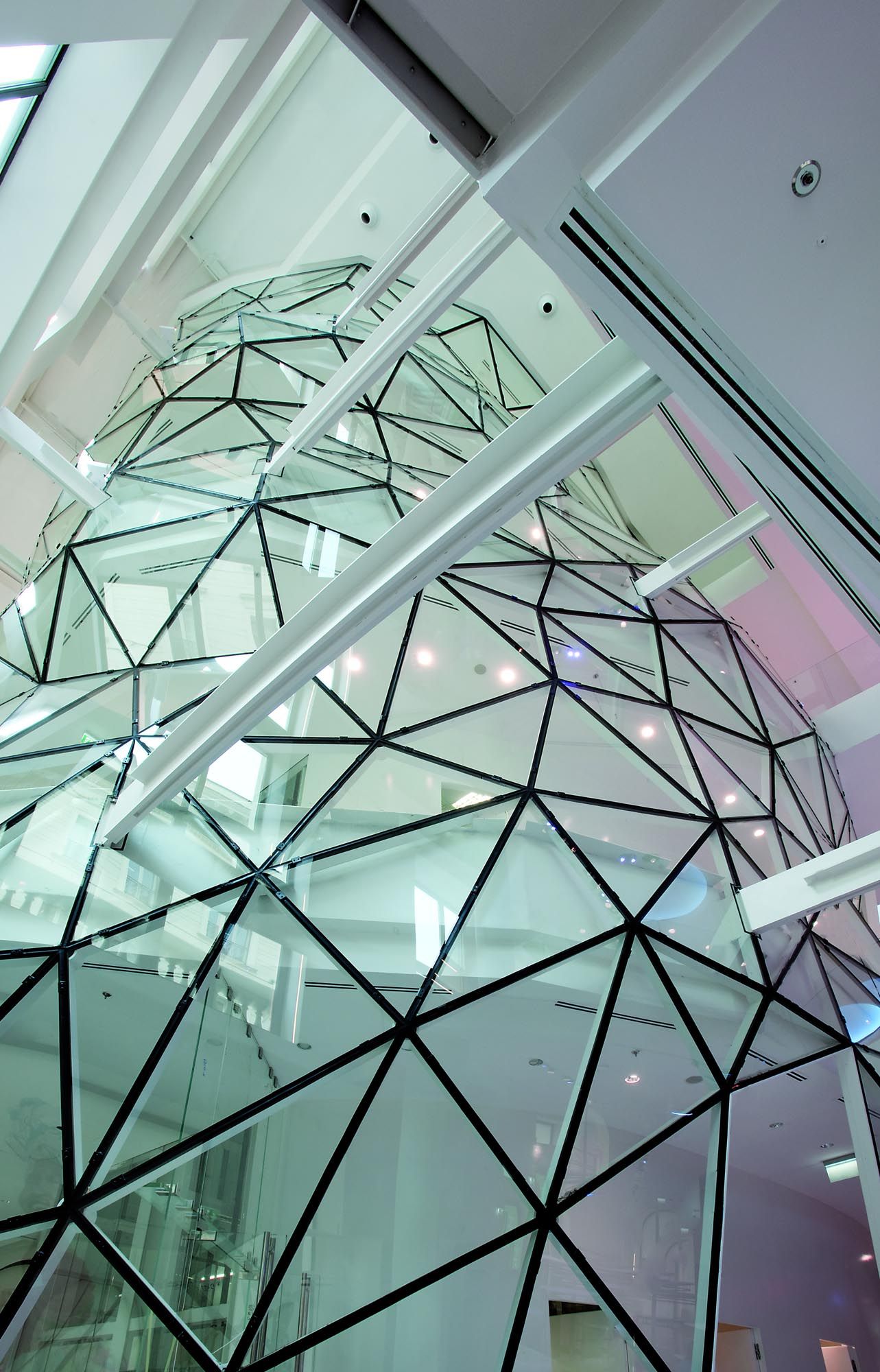 Een belangrijke wijziging betreft de constructie van de centrale staalconstructie die, vertrekkend van de onderkant van het gebouw, stijgt en de vier verdiepingen doorkruist, om bovenaan uit te komen bij de overdekking van een panoramisch terras van ongeveer 300 vierkante meter. Er zijn twee soorten glas gebruikt: zeer selectief dubbel glas voor de Nuvola en enkel glas voor de Lanterna; de twee beglaasde elementen bestaan uit ongeveer 1.000 driehoekige modules, elk met verschillende afmetingen, die ongeveer 2.000 vierkante meter beslaan. De toegepaste bouwtechniek is interessant: een structuur die zijn sterkte krijgt dankzij haar vorm, niet door de doorsneden van de profielen maar door het concept dat gebaseerd is op de gedrukte structuren die typisch zijn voor de oude Romeinse bogen. Meer in detail worden de glasoppervlakken ondersteund door stijve stalen staven, bestaande uit op maat gewalste profielen in S275 en S355. Het gebruik van het BIM-platform (Building Information Modeling), dat de samenwerking tussen opdrachtgevers en externe leveranciers bevordert en zo de uiteindelijke kosten drukt, was van fundamenteel belang voor het beheer van alle fasen van het proces, van modellering tot structurele berekeningen, van inkoop tot productie.