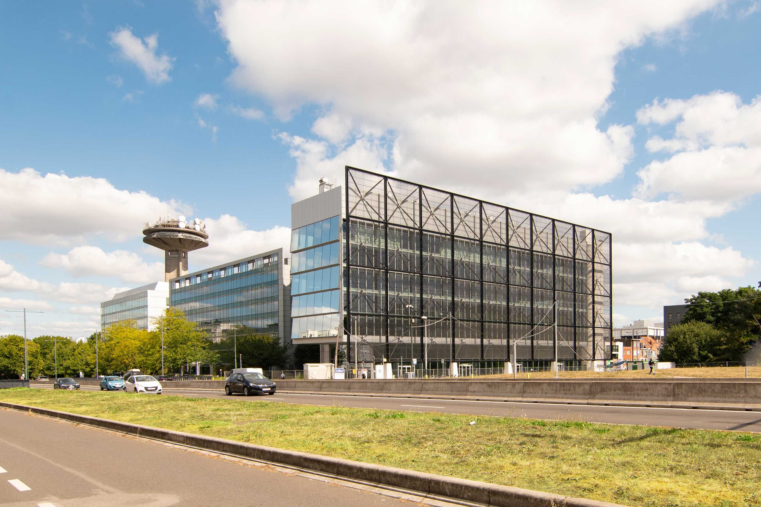 Vlakbij de VRT/RTBF-toren aan de Reyerslaan in Schaarbeek liet de Brusselse Maatschappij voor Stedelijke Inrichting (MSI) met de steun van het Europees Fonds voor Regionale Ontwikkeling een opvallend gebouw optrekken, Frame.